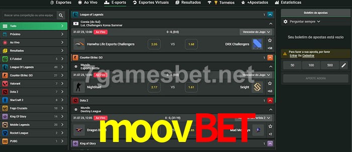 O moovbet oferece uma grande seleção de opções de apostas em e-sports com probabilidades competitivas